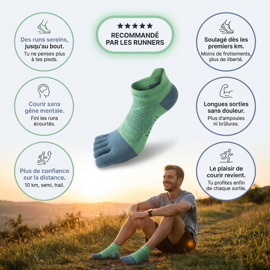 Oui, la séparation des orteils réduit les frottements peau contre peau, l’une des causes les plus fréquentes des ampoules sur les longues sorties.
