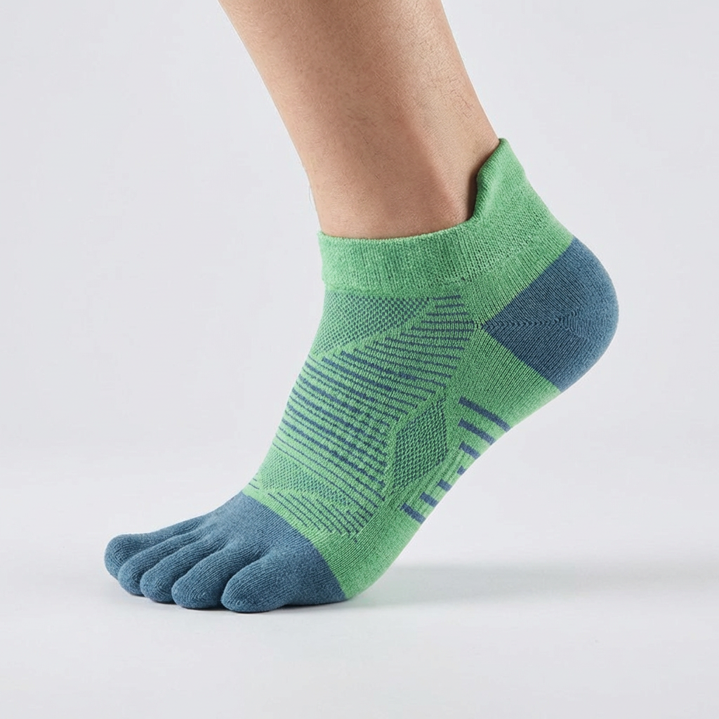 La séparation des orteils aide à réduire les frottements responsables des ampoules, tandis que les zones respirantes gardent vos pieds au sec pendant l’effort.